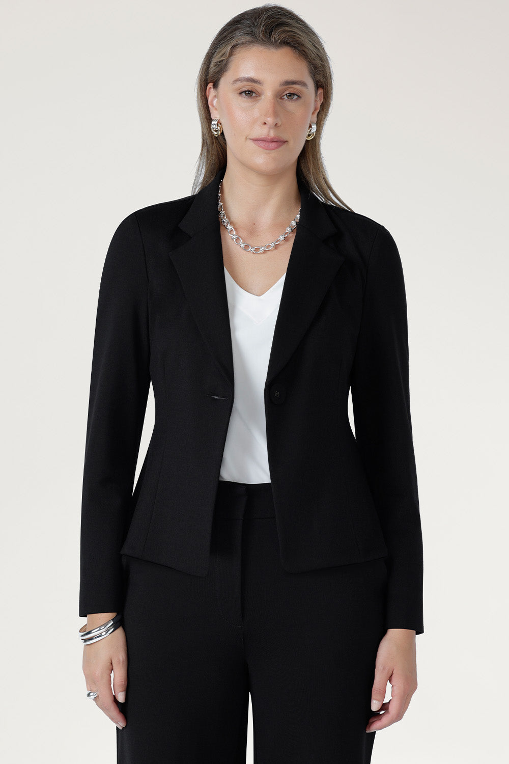 Crafted from our much-loved Tech Stretch fabric, the Shortline Tailored Jacket is a new silhouette that expertly elevates every outfit. Designed for modern workwear, it features a polished structure with comfortable four-way stretch that moves with you throughout the day. A versatile, shorter-length tailored blazer perfect for professional settings and everyday styling.