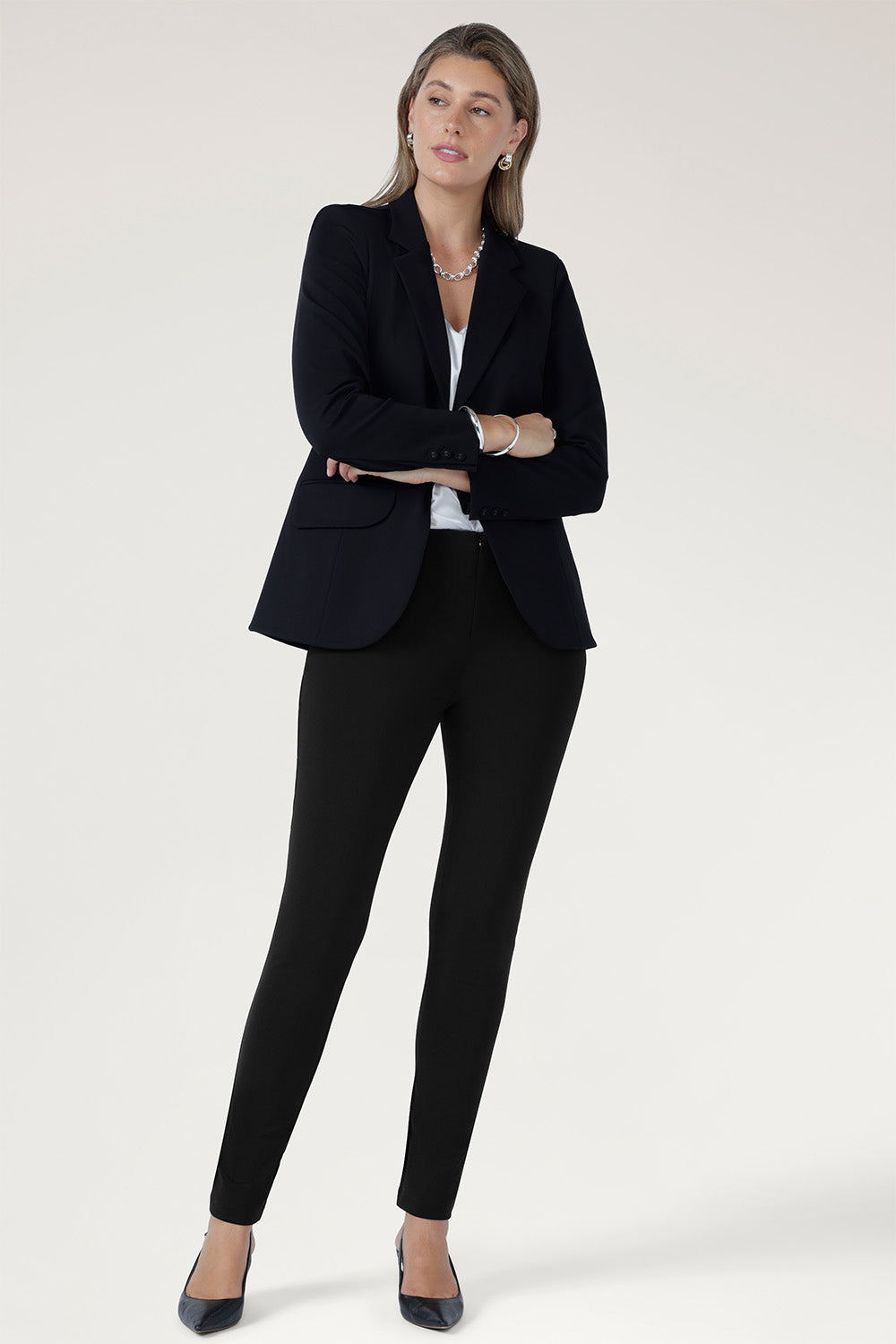 • Premium double-knit stretch fabric with a polished, sculpted look