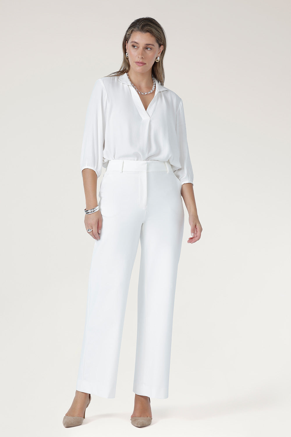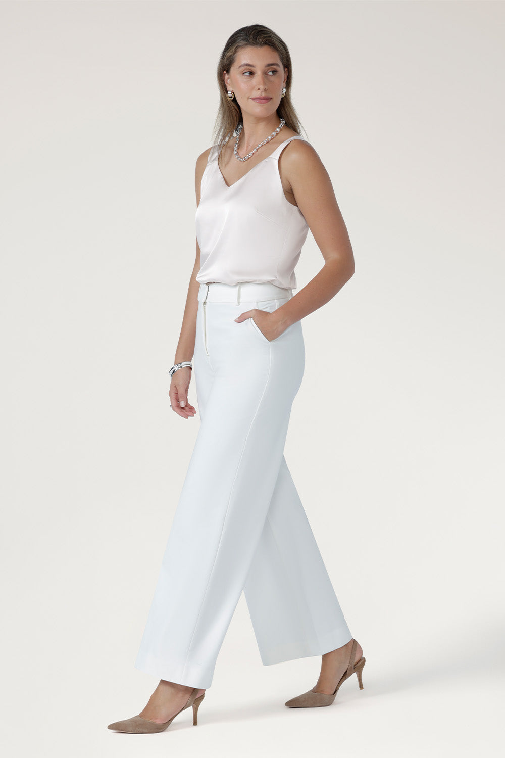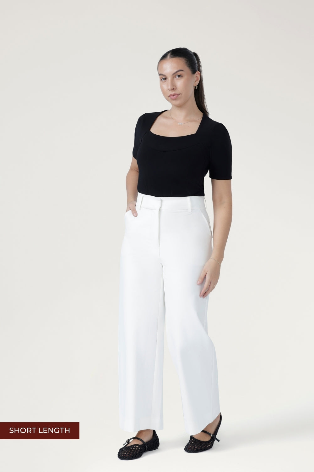 Crafted from a luxe Tech Stretch fabric, the best-selling Wide Leg Pant returns, reimagined to move with real women. Blending timeless tailoring with intelligent design, the high-rise waist, functional fly and waistband, and fluid leg line, offers the ease of movement you love, with the polish you need.