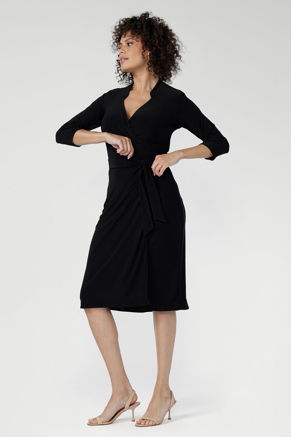 Crafted from our signature dry-touch stretch jersey fabric, the Jett Dress is a sophisticated wrap dress, tailored for a corporate or event setting and featuring a modern angular collar detail adds an edgy look to your workwear style.