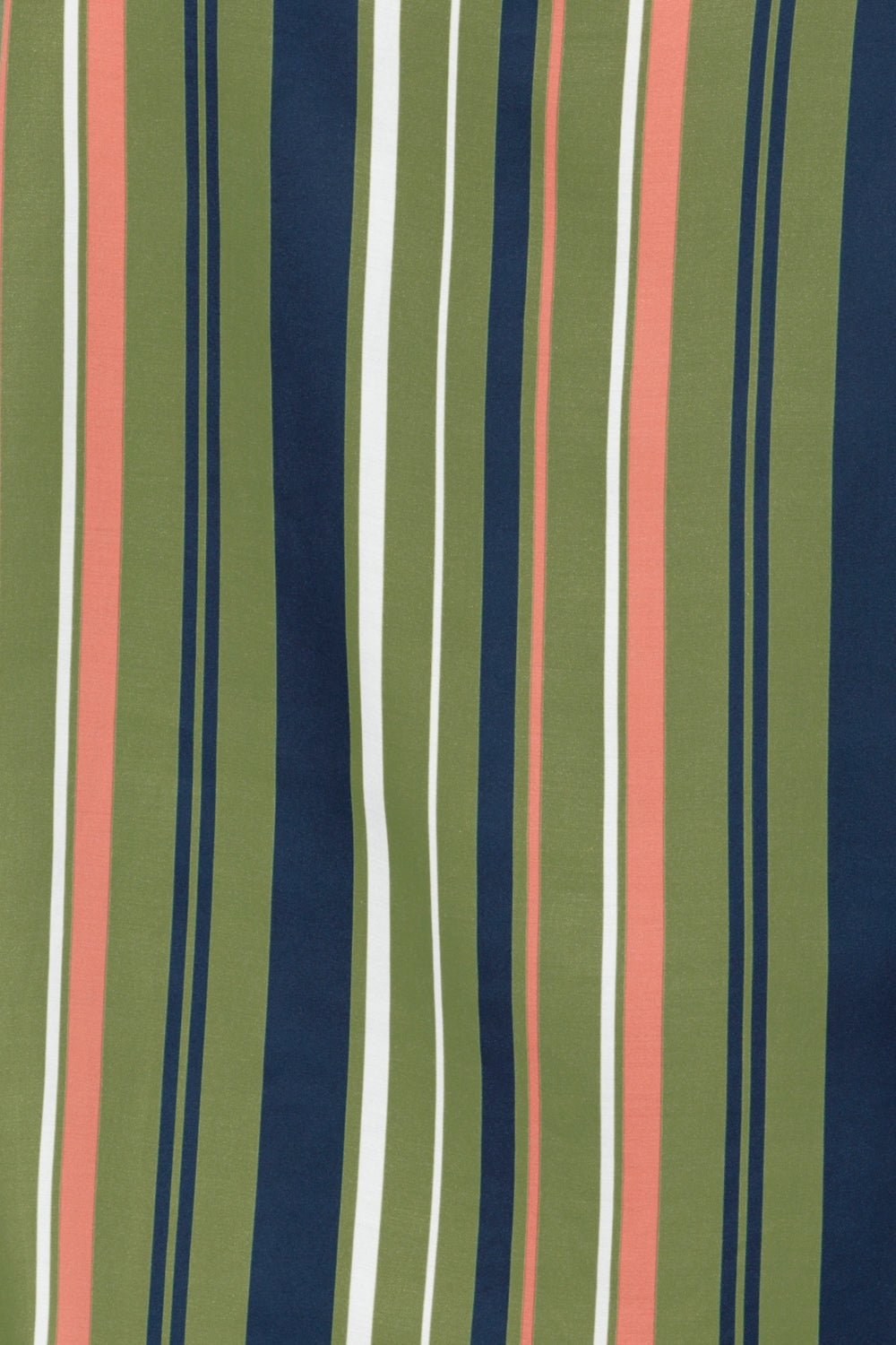• Green Multi Stripe print blending olive, coral, navy and ivory hues