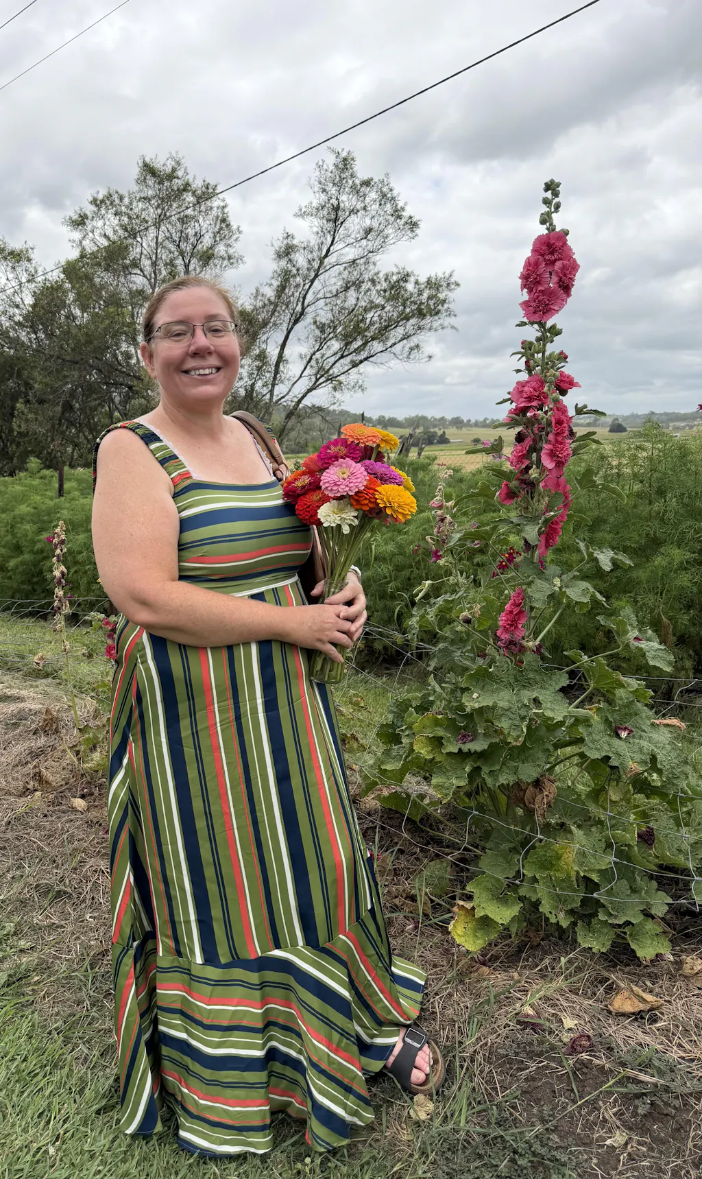 Love the colours, like the flow but dislike my arms (white cover shirt ordered). The straps are extremely flexible (to allow multiple breast sizes) but I had to keep hiking them over to cover my bra straps. Bottom half very warm, I am in south east qld and it was 30 degrees and very humid today. A nice 25 degree day with low humidity would so work for this dress.