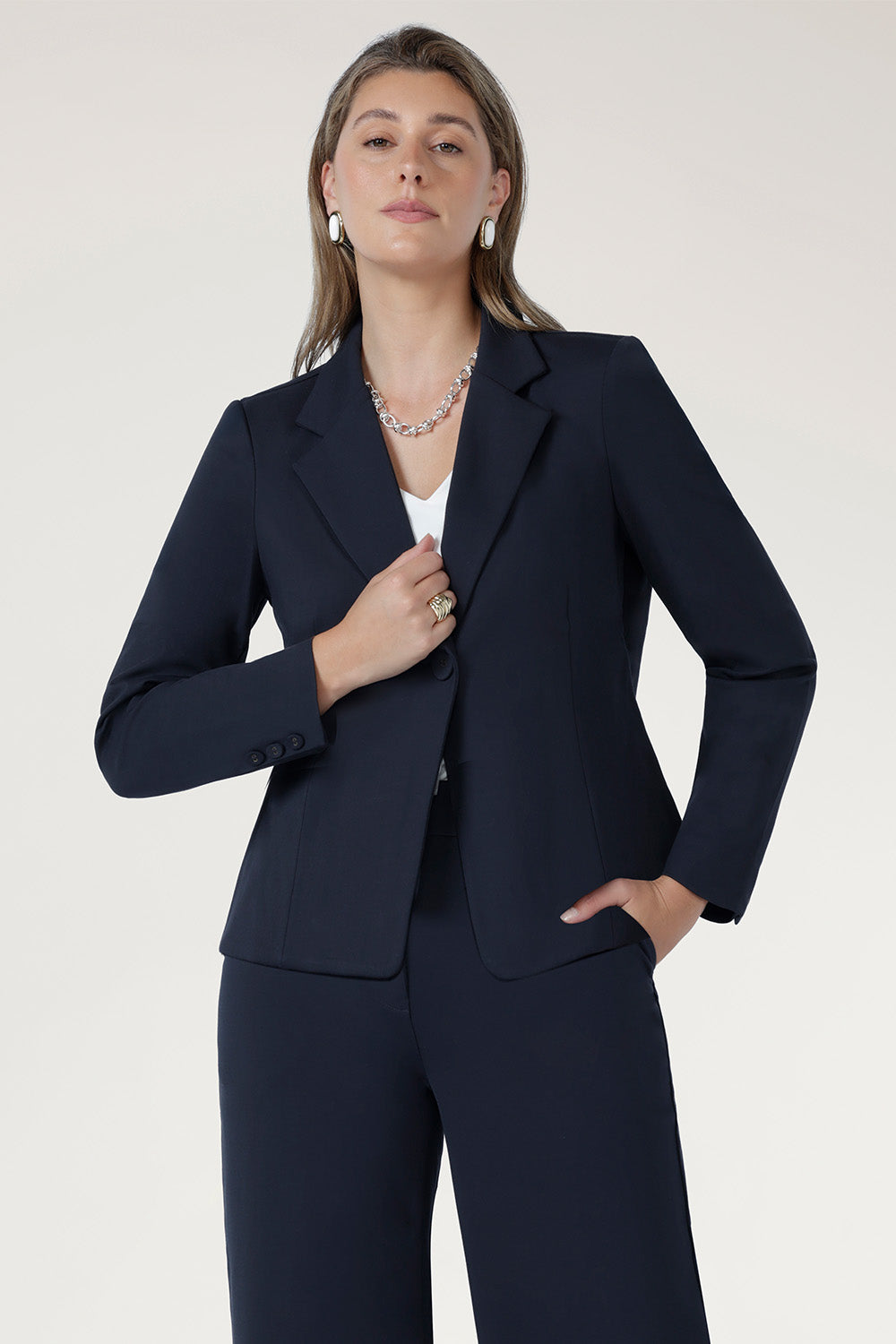 Crafted from our much-loved Tech Stretch fabric, the Shortline Tailored Jacket is a new silhouette that expertly elevates every outfit. Designed for modern workwear, it features a polished structure with comfortable four-way stretch that moves with you throughout the day. A versatile, shorter-length tailored blazer perfect for professional settings and everyday styling.
