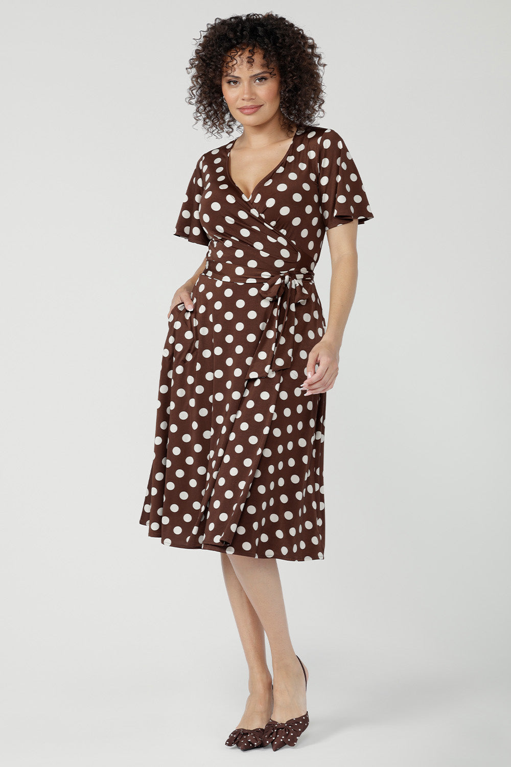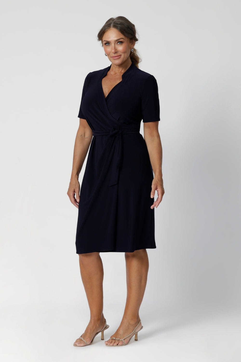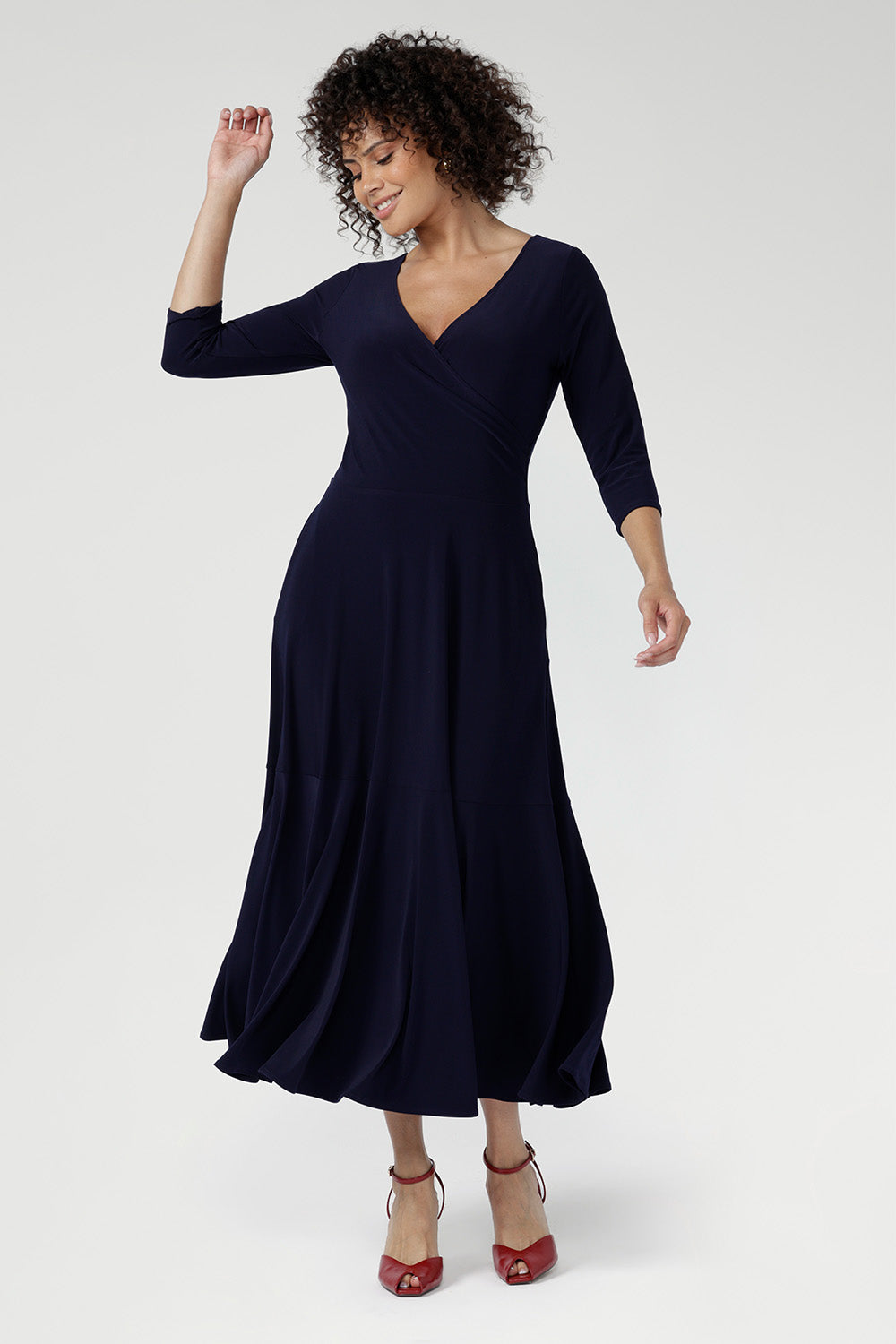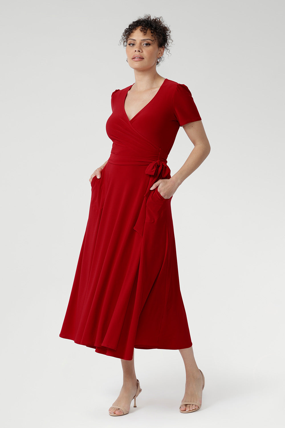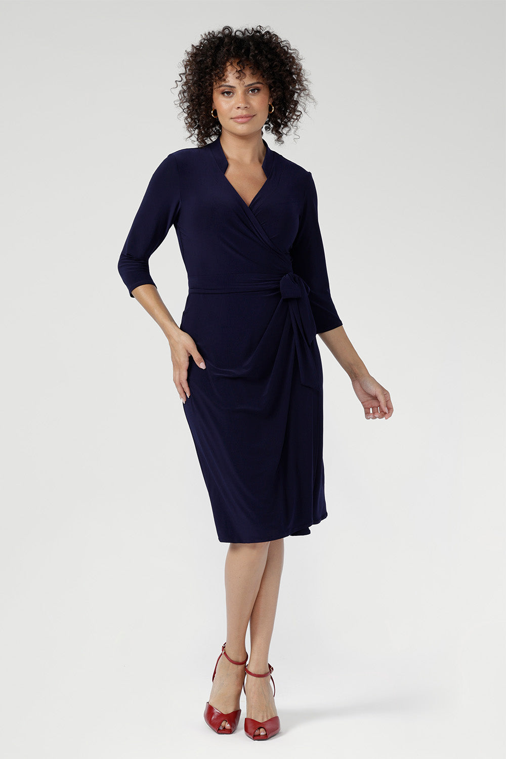 Our wrap dress collection is designed to offer style without compromise—flattering, functional, and made to move with you. Whether you're looking for a polished outfit for work or a comfortable option for dinner with friends, a wrap-around dress adapts to your day. At Leina + Fleur, we’re proud to be Australian-owned, with most of our dresses ethically produced in Australia, in sizes 8 to 24. We design with real women in mind—those who want to look smart without feeling restricted. This range includes long-sleeved wrap dresses, midi wrap dresses, fit and flare styles, and statement prints like the floral wrap dress. Explore options in deep navy, classic black wrap dresses, and bold tones like red and pink—all crafted with our slow fashion values. Discover the full collection here and find your ideal fit for work, weddings, or weekends.