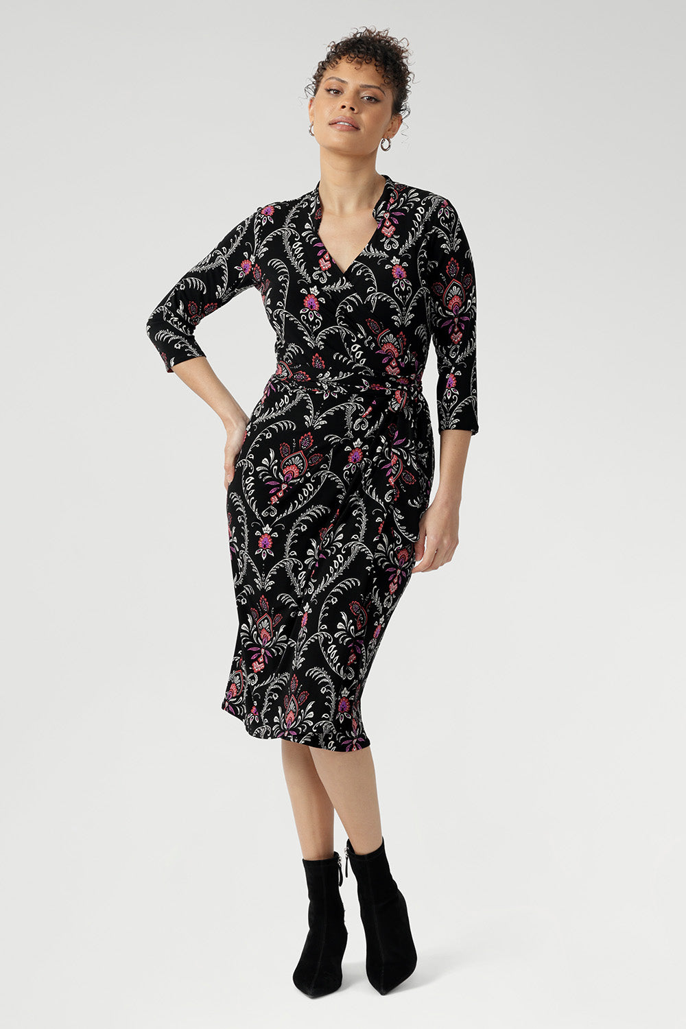 A jersey dress is known for its soft, stretch fabric and flattering drape. This collection features styles including jersey wrap dresses, V-neckline designs, empire lines, and A-line dresses, making it easy to find a shape that suits you. From black and navy dresses ideal for professional settings to pink and red wrap dresses perfect for events like Mother of the Bride, these dresses suit a wide range of moments. Wondering if wrap dresses are flattering? Absolutely—they accentuate the waist, flatter the bust, and skim over the hips for a naturally balanced silhouette.